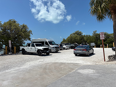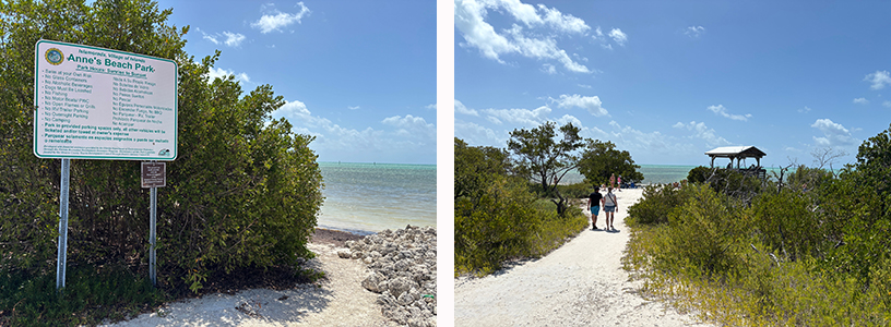 At Anne's Beach MM73 Ocean side, you 'll find a small parking lot on both ends. A public bathroom is also available.